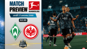 - วิเคราะห์บอล บุนเดสลีกา : แวร์เดอร์ เบรเมน พบกับ ไอน์ทรัค แฟร้งค์เฟิร์ต 16/1/69ศึกบุนเดสลีกา แวร์เดอร์ เบรเมน เปิดรังรับไอน์ทรัค แฟร้งค์เฟิร์ต เช็กสถิติ H2H ฟอร์ม 5 นัดหลัง ความพร้อม 11 ตัวจริง และมุมมองลงทุนพร้อมทรรศนะจบครบทั้งสกอร์และ ราคาบอล จากสายพนันตัวจริงสไตล์ GOALSIAM