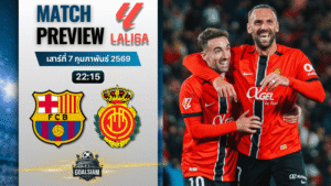 - วิเคราะห์บอล ลาลีกา สเปน : บาร์เซโลน่า พบกับ มายอร์ก้า 7/2/69พรีวิวลาลีกา บาร์เซโลน่า พบ มายอร์ก้า เช็กสถิติ H2H ฟอร์ม 5 นัดล่าสุด ความพร้อม 11 ตัวจริง และแนวทางลงทุนตาม ราคาบอล ต่อ 2.25 แบบละเอียด สายทีเด็ดบอลและนักลงทุนต้องไม่พลาดบทวิเคราะห์สไตล์ GOALSIAM