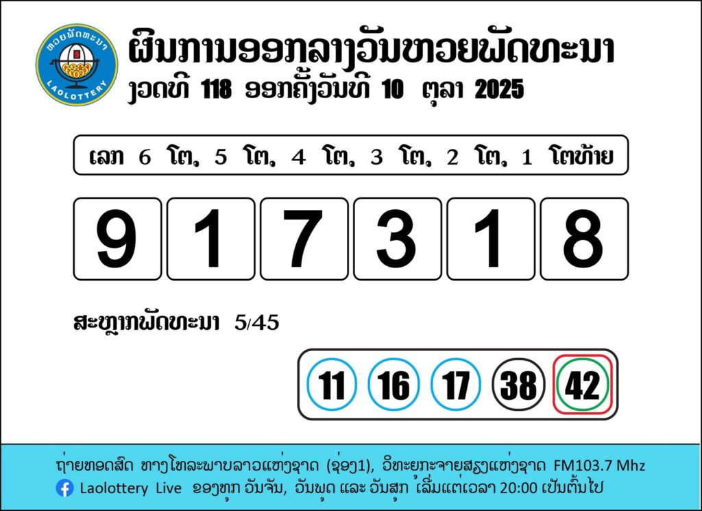 📌 ผลรางวัลหวยลาววันนี้ 10 ตุลาคม 2568 (ลาวพัฒนา)