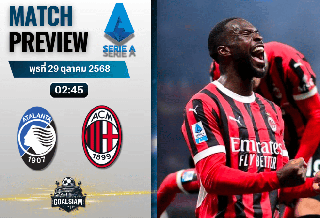 เกมใหญ่ที่แฟนบอลอิตาลีรอคอยกำลังจะเริ่มต้นขึ้น เมื่อ อตาลันต้า ทีมที่เสมอจนได้ฉายา “เจ้าแห่งการแบ่งแต้ม” มีโปรแกรมเปิดบ้านรับการมาเยือนของ เอซี มิลาน ที่กำลังไล่ล่าแชมป์แบบเอาจริง งานนี้บอกเลยว่ามีของ ทั้งประวัติการเจอกันสุดดุเดือด ฟอร์มแรงของทีมเยือน และแรงกดดันของเจ้าบ้านที่จะต้องเร่งฟื้นความมั่นใจ เป็นอีกหนึ่งเกมที่เหมาะสำหรับสายตาม ทีเด็ดบอล วิเคราะห์บอล GOALSIAM แบบสุดๆ