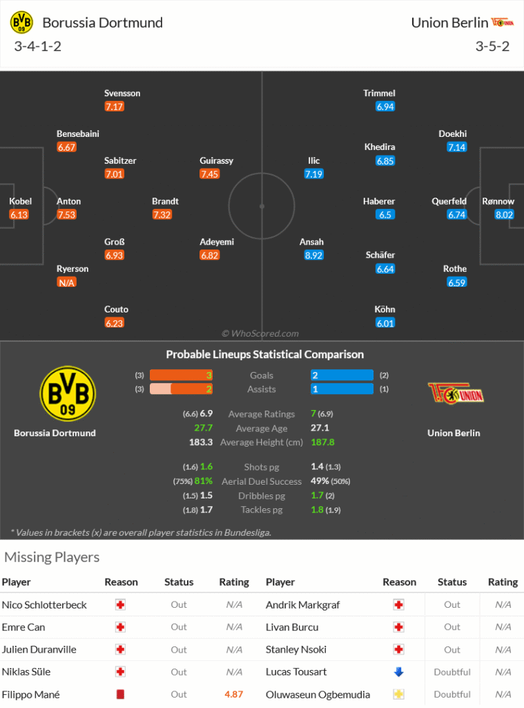 เกมนี้เป็นอะไรที่น่าสนใจสุดๆ เพราะ ดอร์ทมุนด์ แม้จะได้เปรียบเล่นในบ้าน แต่ปัญหาผู้เล่นบาดเจ็บและติดโทษแบนเยอะมาก เกมรับไม่ค่อยนิ่งเลย ส่วน ยูเนี่ยน ฟอร์มกำลังมั่นใจสุดๆ จากการชนะ 2 นัดติด ยิงกระจายแถมแนวรับก็เอาอยู่ มองเกมนี้แล้วโอกาสที่เจ้าบ้านจะยิงขาดเกินราคาบอลนั้นดูยาก