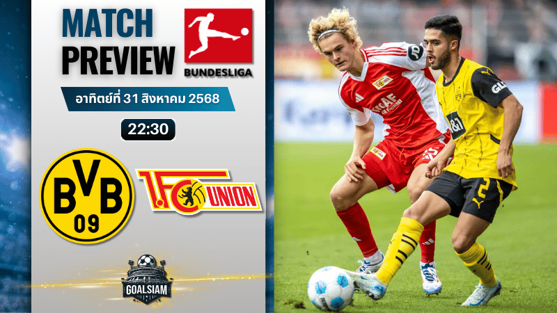บิ๊กแมตช์ค่ำคืนวันอาทิตย์ที่ 31 สิงหาคม 2568 เวลา 22:30 น. ที่สนาม ซิกนัล อิดูน่า พาร์ค เจ้าถิ่น โบรุสเซีย ดอร์ทมุนด์ เตรียมเปิดบ้านรับการมาเยือนของ ยูเนี่ยน เบอร์ลิน เกมนี้บอกเลยว่ามีครบทั้งความมันส์และความกดดัน โดยเฉพาะเรื่องราคาบอลที่เปิดมาให้เสือเหลืองต่อถึง 1.25 งานนี้ วิเคราะห์บอล GOALSIAM จะพามาวิเคราะห์กันแบบเจาะลึก