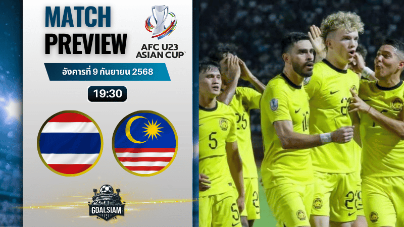 ศึกฟุตบอล U23 AFC Asian Cup Qualification คืนวันอังคารที่ 9 กันยายน 2568 บอกเลยว่ามันส์ทะลุจอแน่นอน เพราะเป็นเกมตัดสินอนาคตของสองทีมยักษ์ใหญ่จากอาเซียน ไทย U23 เปิดรังธรรมศาสตร์ สเตเดียม ปะทะ มาเลเซีย U23 ที่กำลังมั่นใจสุดขีดหลังเพิ่งถล่มมองโกเลีย 7-0 งานนี้ GOALSIAM ขอบอกตรง ๆ ว่าแฟนบอลห้ามพลาด เพราะนี่คือหนึ่งในแมตช์ที่ทุกสายตาจะจับจ้องกันทั้งประเทศ วิเคราะห์บอล GOALSIAM มองว่าเกมนี้มีอะไรให้ลุ้นเพียบแน่นอน