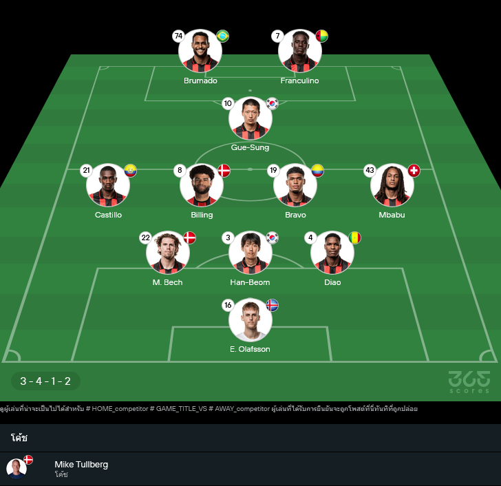 ฟอร์มดีและสภาพทีมถือว่าโอเค เจ็บจริงมี Dani Silva ส่วน Mikel Gogorza กับ Ovie Ejeheri ต้องรอทดสอบความฟิต ระบบหลัก 3-4-1-2 จุดขายคือสองกองหน้าทรงพลัง Franculino จับคู่ Brumado โดยมี Gue-Sung ยืนฟรีโรลหลังคู่หน้า สนับสนุนจากวิงแบ็ก Castillo และ Mbabu