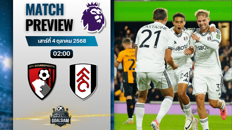ศึกพรีเมียร์ลีกระอุ! บอร์นมัธ เปิดรังรับ ฟูแล่ม ลุ้นสามแต้มเดือดค่ำนี้