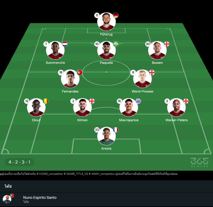 31/08/2025 | พรีเมียร์ลีก | ฟอเรสต์ 0-3 เวสต์แฮม |