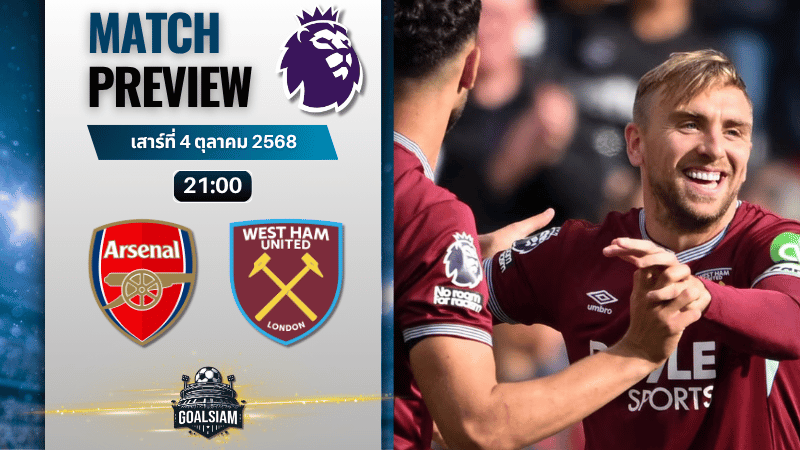 ถึงเวลาศึกดาร์บี้ลอนดอนเดือดแห่งค่ำคืนวันเสาร์นี้! เมื่อ อาร์เซน่อล ทีมอันดับ 2 ของตาราง กำลังคึกคักสุดขีด พร้อมเปิดบ้านรับมือ เวสต์แฮม ยูไนเต็ด ทีมอันดับ 19 ที่กำลังดิ้นหนีตายแบบสุดทาง เกมนี้ไม่มีคำว่าประนีประนอม เพราะเจ้าบ้านต้องการสามแต้มไล่บี้จ่าฝูง ส่วนทีมเยือนต้องสู้ถวายหัวเพื่ออยู่รอดบนเวที พรีเมียร์ลีก ใครชอบของแรง บอกเลยว่าเกมนี้ต้องตาม วิเคราะห์บอล GOALSIAM ไม่มีผิดหวังแน่นอน!