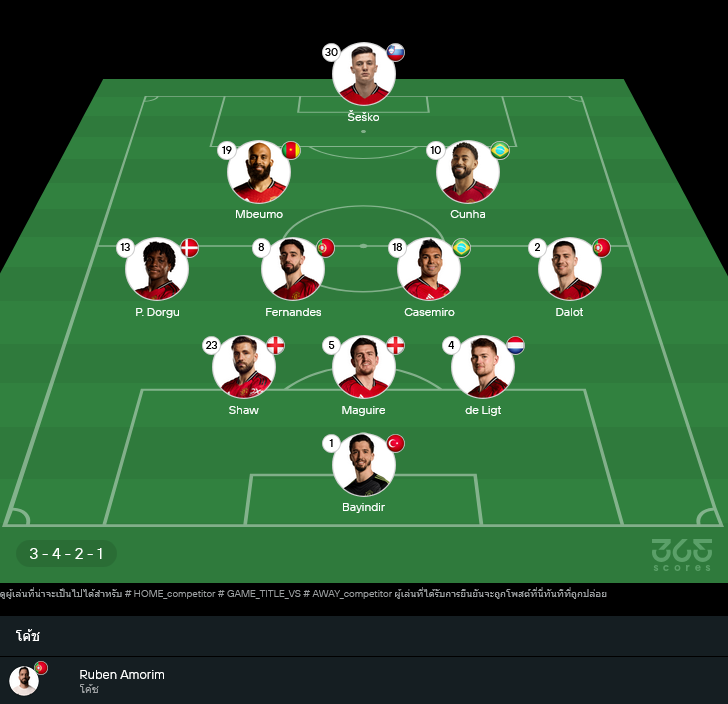 แมนเชสเตอร์ ยูไนเต็ด (รูเบน อาโมริม) – ระบบ 3-4-2-1
