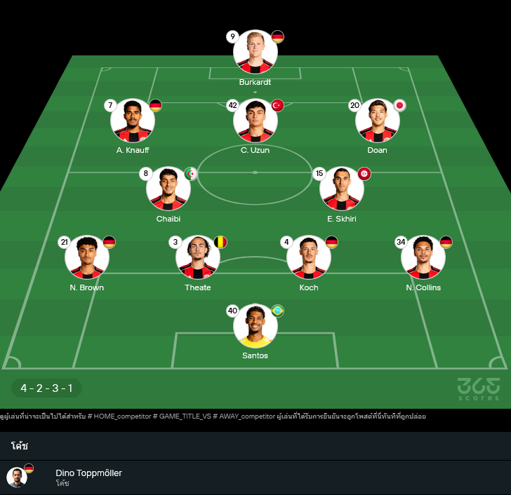 13/09/2025 | บุนเดสลีกา | เลเวอร์คูเซ่น 3-1 แฟร้งค์เฟิร์ต |