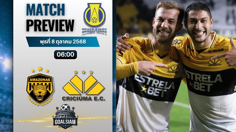 เกมใหญ่ปลายสัปดาห์ของ คัมปิโอนาโต บราซิเลียโร ซีรีบี มาแล้วจ้า เจ้าถิ่น อมาโซนาส เอฟซี ที่กำลังหนีตาย เปิด เอสตาดิโอ มูนิซิปัล คาร์ลอส ซามิทธ์ รับมือผู้ลุ้นเลื่อนชั้นอย่าง คริคูม่า บอกตรงๆ งานนี้ใส่กันมันส์ เพราะเจ้าบ้านต้องเอาแต้มทุกทาง ส่วนทีมเยือนห้ามพลาดเพื่อเกาะกลุ่มบน ใครอยากตามลุ้นแบบมีหลักมีฐาน จดโพยตาม วิเคราะห์บอล GOALSIAM ได้เลย
