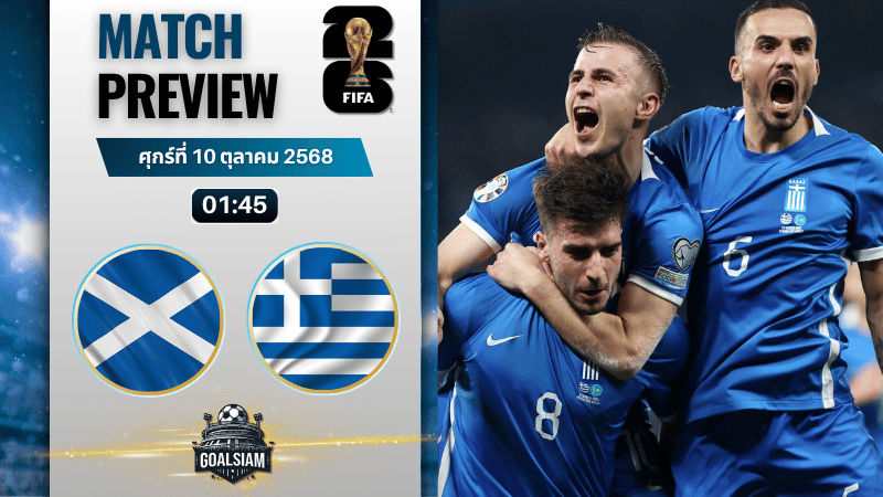 ศึกใหญ่ระดับยุโรปคืนนี้ห้ามพลาด! เกม คัดบอลโลก 2026 โซนยุโรป กลุ่มซี คู่เด็ดที่แฟนบอลจับตา สกอตแลนด์ ทีมอันดับ 2 เปิดรัง แฮมพ์เด้น ปาร์ค รับการมาเยือนของ กรีซ ทีมอันดับ 3 ที่พร้อมล้างแค้นหลังพ่ายในบ้านไปก่อน เกมนี้เดิมพันสูงสุด เพราะใครเก็บสามแต้มได้มีสิทธิ์ขยับใกล้รอบต่อไป วิเคราะห์บอล GOALSIAM ขอนำเสนอ ทีเด็ดบอล วิเคราะห์ทุกประเด็นแบบเซียนให้ลุ้นบวกเน้นๆ