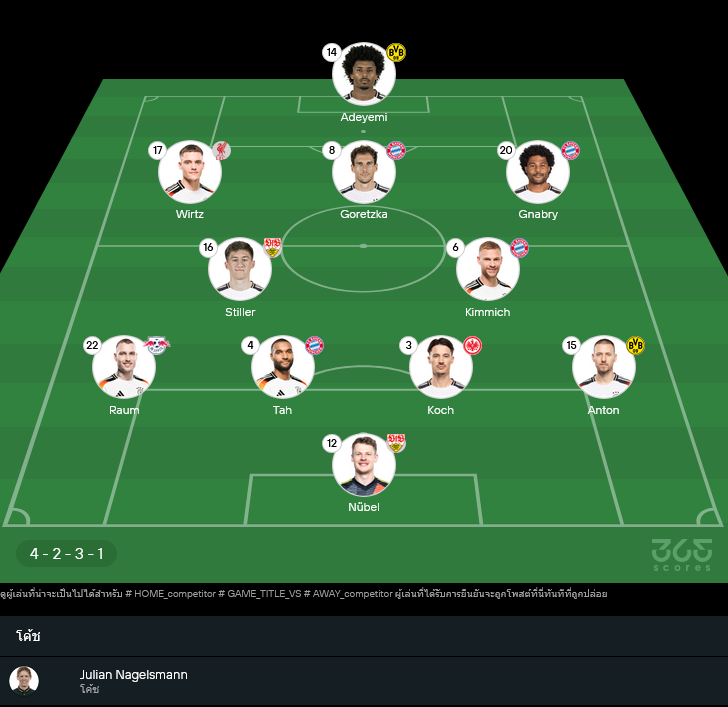 🇩🇪 เยอรมนี (โค้ช: Julian Nagelsmann)