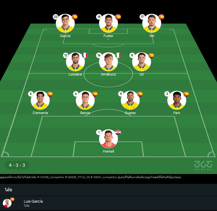 - กองหน้า: García (7.4), Fuster (7.3), Viti (7.2)