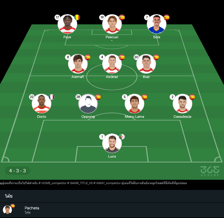 - กองหลัง: Diallo (7.1), Oppong (7.0), Manu Lama (7.2), Casadesús (7.0)