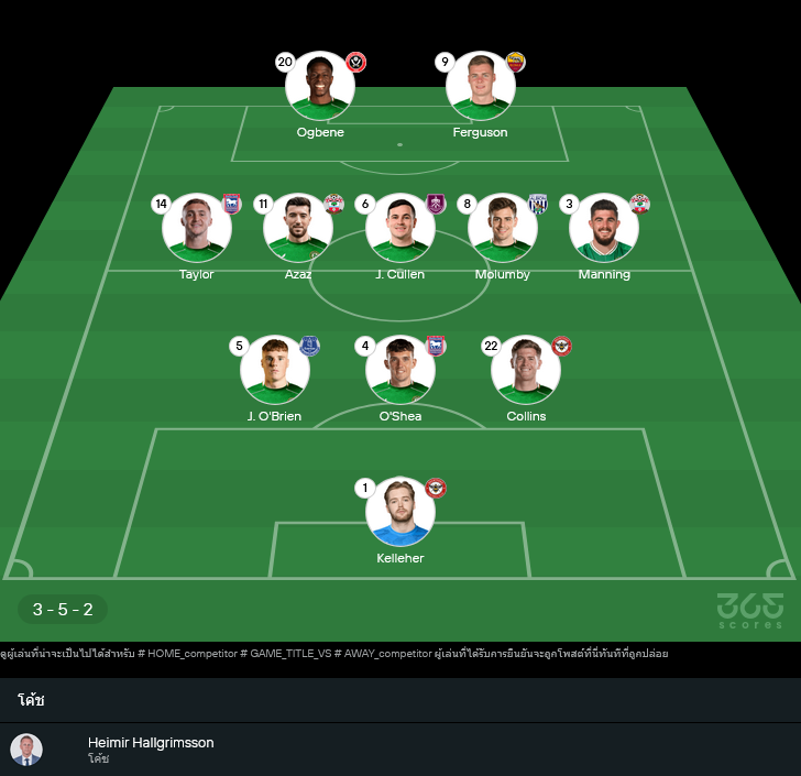 🇮🇪 ไอร์แลนด์ (แผน 3-5-2) – โค้ช: Heimir Hallgrímsson