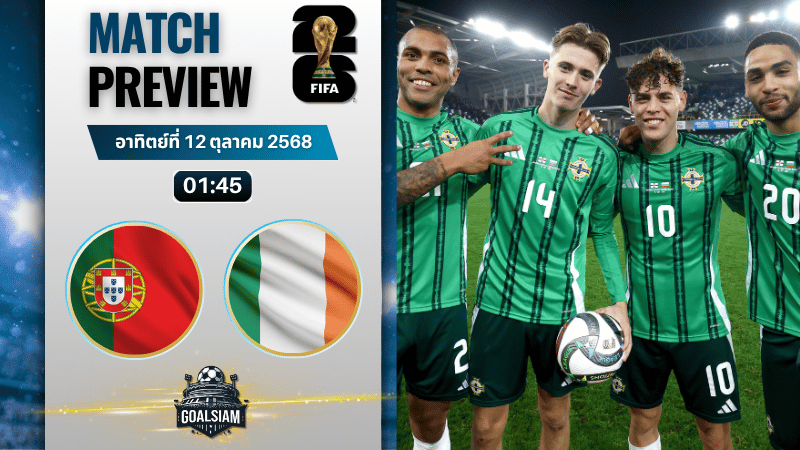 ศึก ฟุตบอลโลก 2026 รอบคัดเลือก โซนยุโรป กลุ่มเอฟ ค่ำคืนนี้เตรียมลุกเป็นไฟ เมื่อ โปรตุเกส ทีมจ่าฝูงที่กำลังฟอร์มแรงแบบสุดขีด เตรียมเปิดบ้านต้อนรับการมาเยือนของ ไอร์แลนด์ ทีมที่กำลังต้องการแต้มอย่างหนัก งานนี้บอกเลยว่าความเข้มข้นระดับ “นรกแตก” เพราะทั้งสองทีมรู้จักกันดี เจอกันทีไรมีดราม่าแทบทุกครั้ง GOALSIAM เชื่อว่าแฟนบอลต้องไม่พลาดเด็ดขาด ใครสาย วิเคราะห์บอล GOALSIAM รีบปักหมุดเวลาเตะไว้เลย!