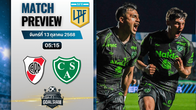 GOALSIAM ขึ้นโต๊ะเอง คู่นี้มันแน่ เจ้าถิ่น ริเวอร์เพลท กำลังอัดอั้น พลาดบ่อยช่วงหลัง แต่กลับสู่รังใหญ่เจอทีมทรงเหนียวอย่าง ซาร์เมียนโต้ ฮูนิน งานนี้บอกเลยห้ามกะพริบ นาทีต่อนาทีมีผลกับบิลเราเต็มๆ ใครมองหาทางทำกำไร จับตาแท็กติกและจังหวะไลฟ์สำคัญๆ แล้วค่อยอัดตามสูตร วิเคราะห์บอล GOALSIAM