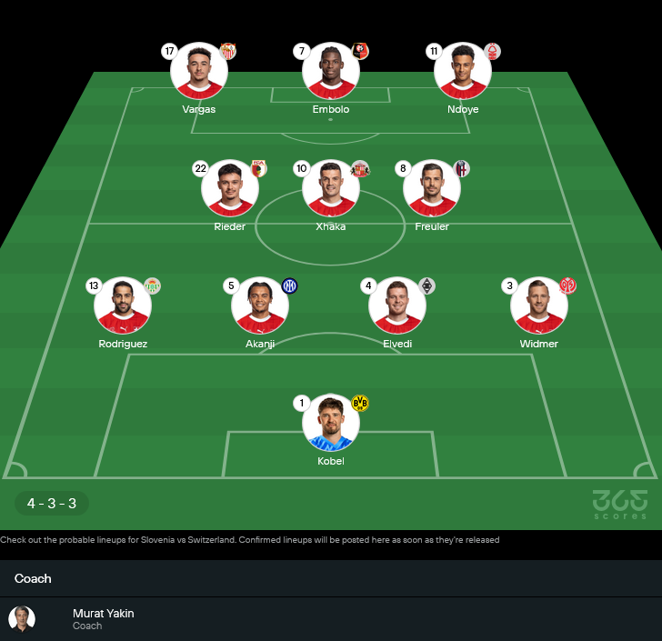 มูรัต ยาคิน ยึดโครง 4-3-3 ที่ลงตัว นำมาโดยกัปตัน กรานิต ชาคา ขับเกมร่วมกับ ฟรอยเลอร์ และ รีเดอร์ แดนหน้าใช้ บรีล เอ็มโบโล่ ค้ำหอก โดยมี วาร์กาส กับ เอ็นดอย ป่วนริมเส้น แผงหลัง อคันจิ–เอลเวดี ยืนคู่เซ็นเตอร์ หน้าไม้สำรองยังเพียบ