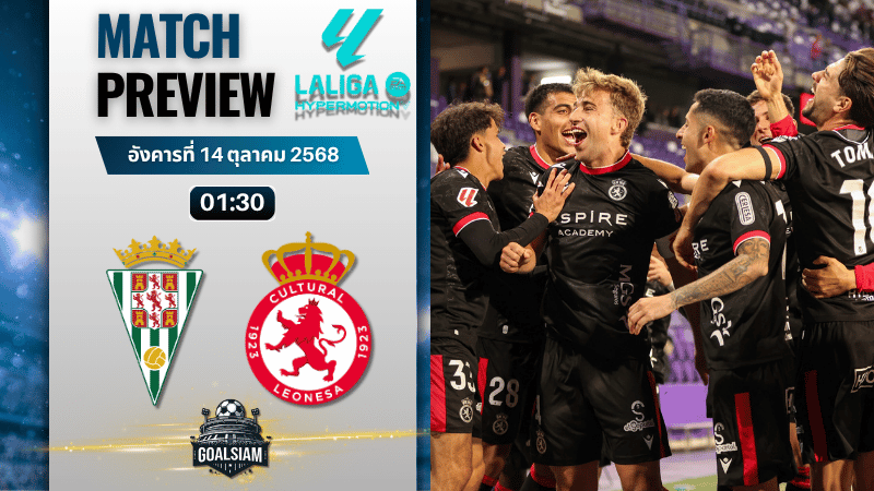 คืนมันส์ของสายลุ้น เซกุนด้า สเปน คู่ดึกสุดระอุที่เอสตาดิโอ นูเอโว อาร์คานเกล เจ้าถิ่น คอร์โดบ้า ต้องเก็บแต้มเพื่อขยับหนีโซนล่าง ส่วนผู้มาเยือน คูลทูรัล เลโอเนซ่า ฟอร์มนอกรังจัดว่ามีทีเด็ดพร้อมบุกยื้อถึงที่สุด งานนี้ วิเคราะห์บอล GOALSIAM พาอ่านทุกซอกมุม ทั้งฟอร์มล่าสุด แท็กติกรายตัว ไปจนถึงแผนทำเงินแบบเนียนๆ พร้อมเสิร์ฟ ทีเด็ดบอล สายลงทุนสไตล์โหดๆ ของ GOALSIAM
