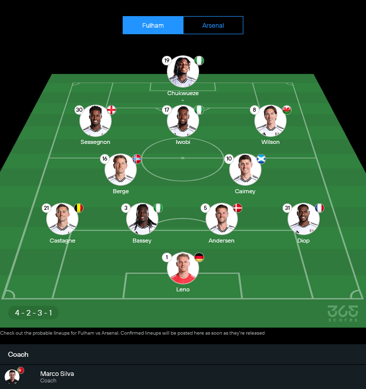 สภาพทีมยังต้องลุ้นหลายราย ทั้ง ซาช่า ลูคิช และ ราอูล ฆิเมเนซ เช็กฟิต ขณะที่ เคนนี่ เตเต้, โรดรีโก้ มูนิซ, อันโทนี โรบินสัน ยังเดี้ยง โดยภาพรวม มาร์โก ซิลวา น่าจะยืน 4-2-3-1 เน้นรัดกุมแล้วรอโต้กลับ ผ่านความเร็วของริมเส้นอย่าง แฮร์รี่ วิลสัน และการเชื่อมเกมของ อเล็กซ์ อิโวบี้