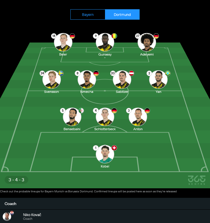 บาเยิร์นภายใต้การนำของ วินเซนต์ ก็องปานี ตอนนี้เครื่องติดสุด ๆ แม้จะมีผู้เล่นบาดเจ็บบางรายแต่ขุมกำลังหลักยังอยู่ครบ พร้อมเปิดบ้านบดใส่ ดอร์ทมุนด์ เต็มสูบ