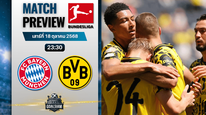 แมตช์นี้มันไม่ธรรมดา เพราะนี่คือศึก “แดร์ คลาสสิเคอร์” ศึกชี้ชะตาความยิ่งใหญ่ของลีกเยอรมัน ที่แฟนบอลทั้งโลกจับตา บรรยากาศก่อนเกมนี่ร้อนระอุไม่แพ้ในสนามเลย เจ้าถิ่น บาเยิร์น มิวนิค มาในฟอร์มโหดชนะรัวแบบไม่เกรงใจใคร ส่วน โบรุสเซีย ดอร์ทมุนด์ ก็มาแรงไม่แพ้กัน ยังไร้พ่ายเช่นกัน งานนี้บอกเลย…ใครพลาดแมตช์นี้มีเสียใจแน่นอน วิเคราะห์บอล GOALSIAM พร้อมจัดให้แบบเน้น ๆ สำหรับสายลงทุนโดยเฉพาะ