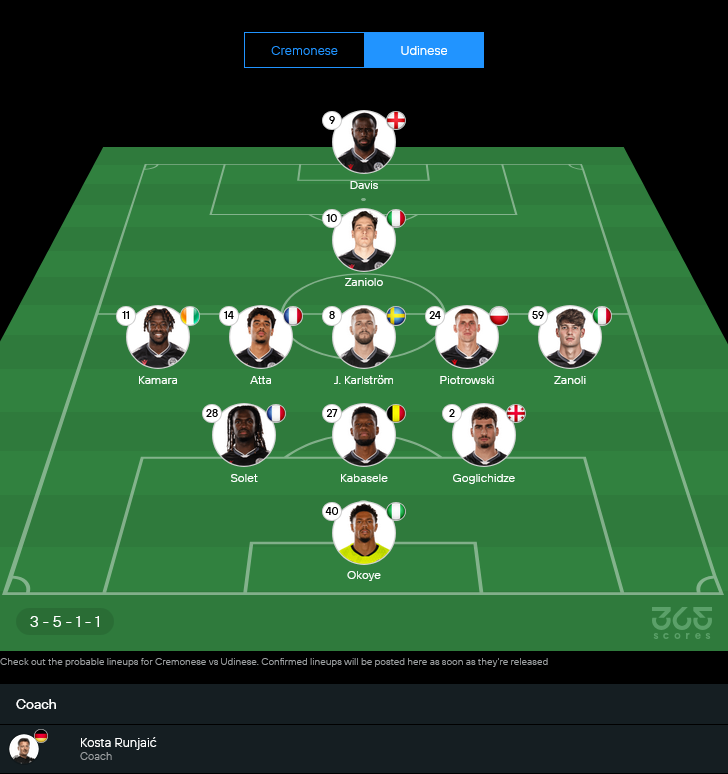 23/04/2023 | เซเรีย อา | อูดิเนเซ่ 3-0 เครโมเนเซ่ |