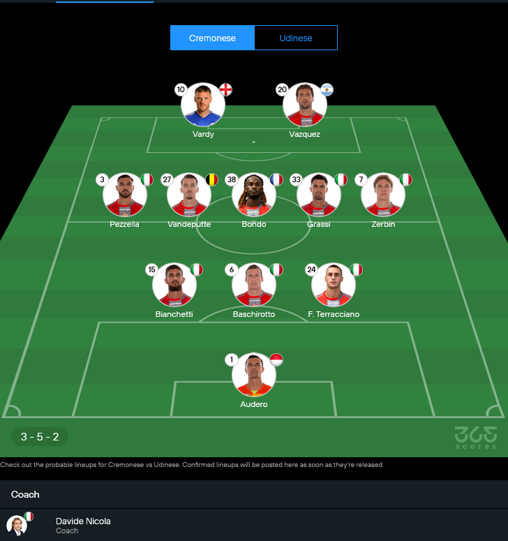 ภาพรวมเฮดทูเฮดเอียงไปทางอูดิเนเซ่ที่คมกว่าในจังหวะสุดท้าย แต่ถ้าเครโมเนเซ่ไม่เล่นผิดฟอร์ม เกมนี้มีลุ้นแบ่งแต้มได้เหมือนกัน