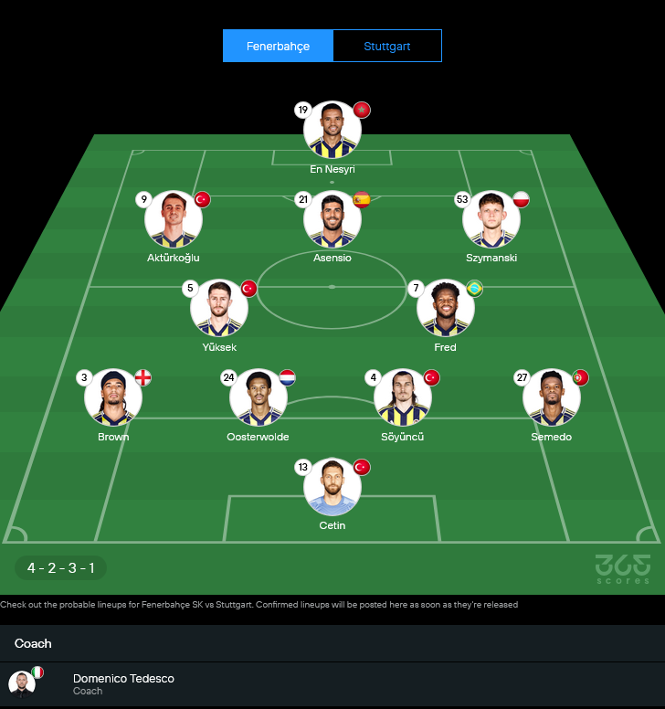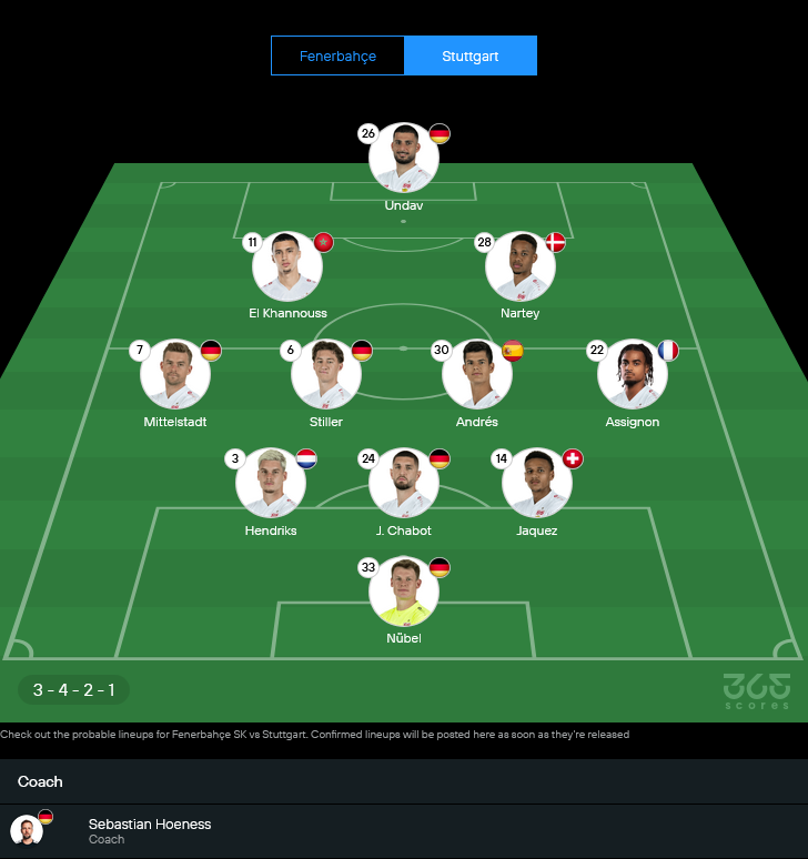 นี่คือการเจอกันอย่างเป็นทางการครั้งแรกของสองสโมสร ข้อมูล H2H เลยไม่ช่วยอะไรนัก ความได้เปรียบจึงเอนไปทางเฟเนร์บาห์เช่ที่คุ้นสนาม แฟนบอลเดอะกันเนอรีสเสียงดังระดับทำให้ทีมเยือนใจสั่น ส่วนสตุ๊ตการ์ตมีดีที่ระเบียบเกมและความเร็วโต้กลับ