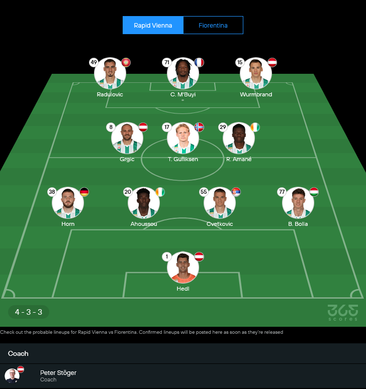 25/08/2023 | UEFA Conference League | ราปิด เวียนนา 1-0 ฟิออเรนติน่า |
