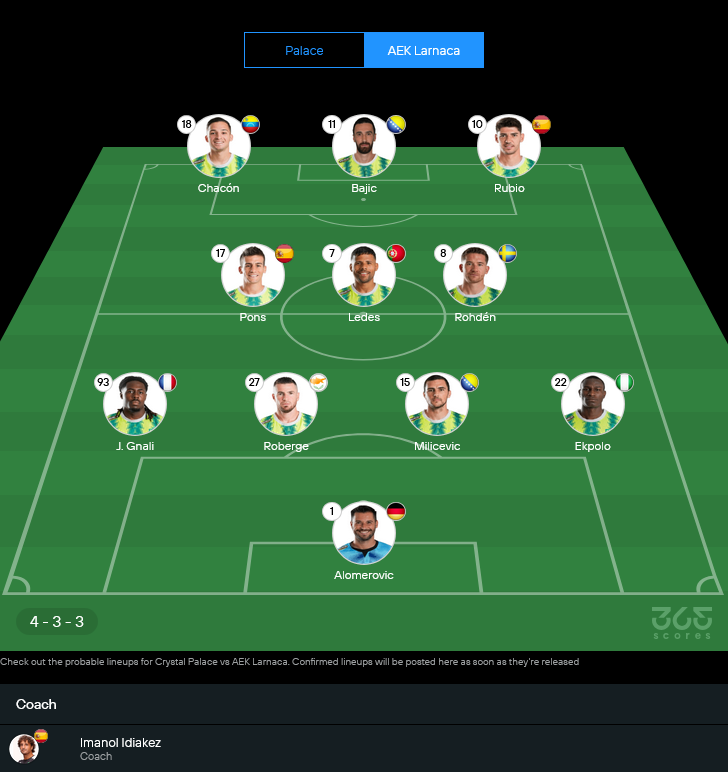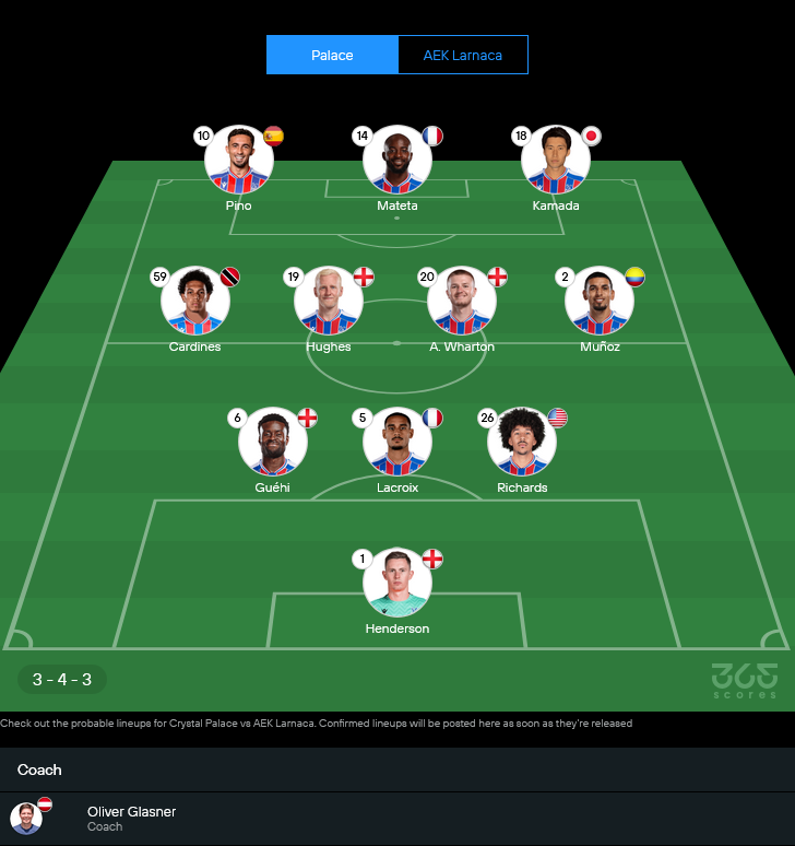 🧮ฟันธงผลการแข่งขัน : คริสตัล พาเลซ 3-0 เออีเค ลาร์นาก้า