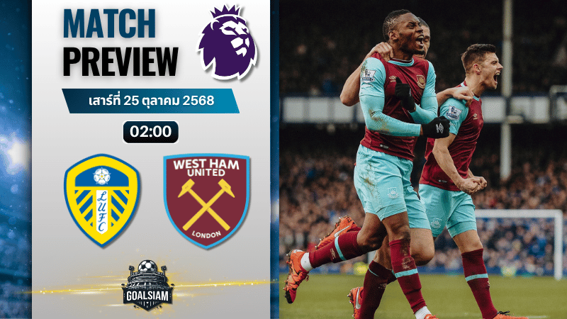 ค่ำคืนนี้เตรียมระอุ เมื่อ ลีดส์ ยูไนเต็ด เปิดบ้านต้อนรับการมาเยือนของ เวสต์แฮม ยูไนเต็ด เกมนี้ไม่ใช่แค่แมตช์ธรรมดา แต่เป็นศึกชี้ชะตาช่วงสำคัญของทั้งสองทีมที่กำลังดิ้นเพื่อหนีโซนอันตราย ความกดดันถาโถม แต่ก็เป็นแมตช์ที่น่าดูแบบสุด ๆ เพราะใครชนะก็มีสิทธิ์ขยับอันดับแบบทันตา เหมาะสุดสำหรับสายลุ้น สายต่อ สายรอง และสายล่าเรตบอล วิเคราะห์บอล GOALSIAM จัดเต็มไม่มีกั๊ก