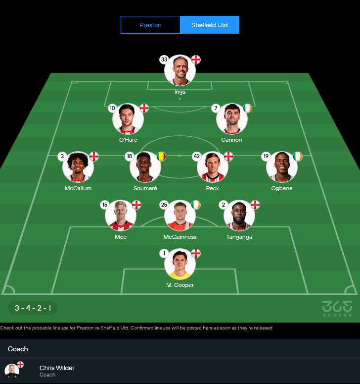 คริส วิลเดอร์ ขาด ฌิบริล ซูมาเร่ เจ็บสด สมทบ เจมี่ แช็คเคิลตัน ที่เดี้ยงยาว แต่โครงหลักยังครบ ระบบ 3-4-2-1 เล่นเป็นทีมมีวินัย เกมสวนกลับไหลลื่น ใช้ แดนนี่ อิงส์ เป็นหอกเป้า มี ทอม แคนนอน กับ คัลลั่ม โอ’แฮร์ สอดขึ้นทำชิ่ง