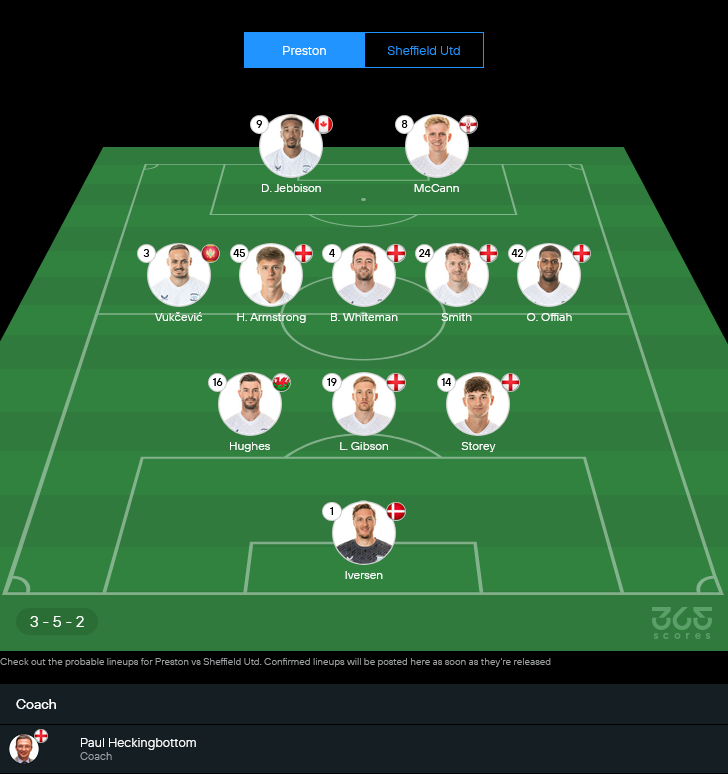 พอล เฮคกิ้งบ็อตท่อม ยังไร้กลุ่มเดี้ยงชุดเดิมอย่าง วิลล์ คีน, ร็อบบี้ เบรดี้, จอร์แดน ธอมป์สัน และ จอช เซียรี่ คาดใช้ 3-5-2 เน้นแพ็กหลังสามและสอดขึ้นเกมด้านกว้าง ตัวตัดเกมวางใจ เบน ไวท์แมน ส่วนคู่หน้าใช้สปีดและพละกำลังลุยแผงหลังดาบคู่