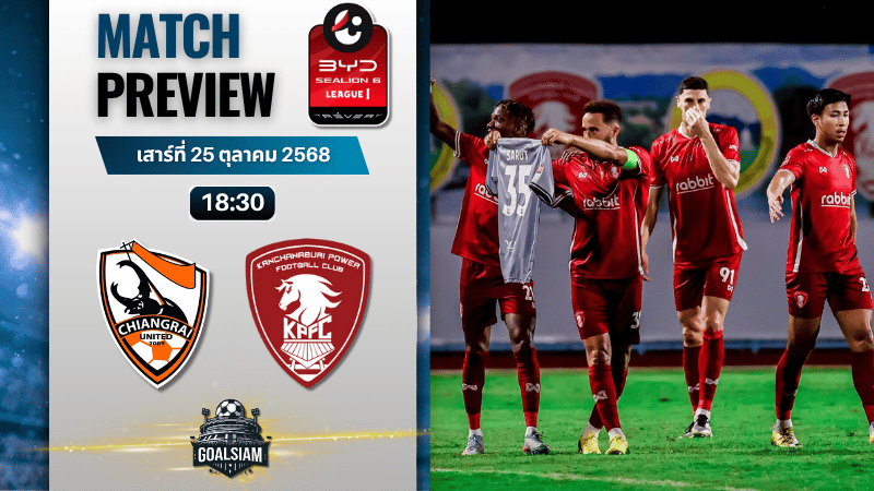 เปิดหัวบิ๊กแมตช์สุดเดือดของค่ำคืนนี้ เมื่อ เชียงราย ยูไนเต็ด เตรียมเปิดรังปะทะ พลังกาญจน์ พาวเวอร์ ในศึก ไทยลีก 1 ที่ทุกแต้มมีความหมายต่อเส้นทางบนตารางคะแนน เกมนี้ไม่ใช่แค่ศึกของสามแต้ม แต่ยังเป็นบทพิสูจน์ของสองทีมที่ต่างต้องการสร้างความมั่นใจในช่วงหัวเลี้ยวหัวต่อของฤดูกาล งานนี้แฟนบอลเตรียมเฮแน่ เพราะบรรยากาศสนามจะลุกเป็นไฟแบบไม่มีใครยอมใคร ใครที่กำลังมองหาเกมบิ๊กแมตช์เดือดๆ นี่แหละเกมที่ห้ามพลาดเด็ดขาด วิเคราะห์บอล GOALSIAM ขอบอกเลยว่าแมตช์นี้เหมาะสุดๆ สำหรับสาย วิเคราะห์บอล ตัวจริง!