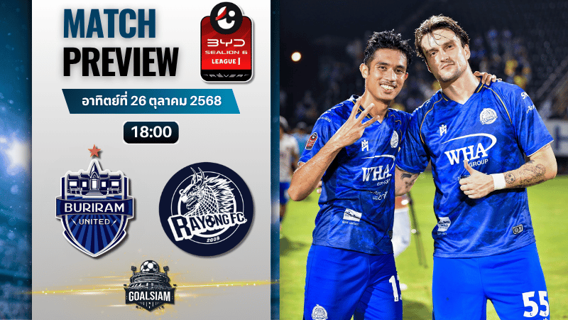 ศึก ไทยลีก คืนนี้เดือดแน่นอน! “ปราสาทสายฟ้า” บุรีรัมย์ ยูไนเต็ด เตรียมเปิดรัง ช้าง อารีนา ต้อนรับการมาเยือนของ ระยอง เอฟซี ทีมฟอร์มดีที่กำลังคึกสุดขีด เกมนี้ถือเป็นอีกหนึ่งคู่ใหญ่ที่สายบอลต้องห้ามพลาด เพราะมีทั้งสถิติข่ม, ฟอร์มร้อน, และราคาบอลที่ขยับน่าสนใจสุด ๆ ใครที่กำลังหามุมมอง วิเคราะห์บอล GOALSIAM วันนี้ บอกเลยต้องอ่านให้จบก่อนวางเดิมพัน!
