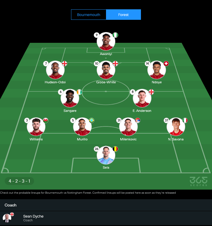 ฌอน ไดช์มีลิสต์เจ็บอย่าง โอลา ไอน่า กับ ดิลาน บา๊ควา ส่วน คริส วู้ด และ โอเล็กซานเดอร์ ซินเชนโก้ ต้องรอเช็กความฟิต เกมรุกฝากความหวังไว้ที่ มอร์แกน กิ๊บบ์ส ไวท์ คอยป้อนให้ ไทโว อโวนียี พร้อมปีกสปีดจัดอย่าง เอ็นดอย และ ฮัดสัน โอดอย กลางตัดเกมใช้ อิบราฮิม่า ซานกาเร่ ช่วยคุมจังหวะ