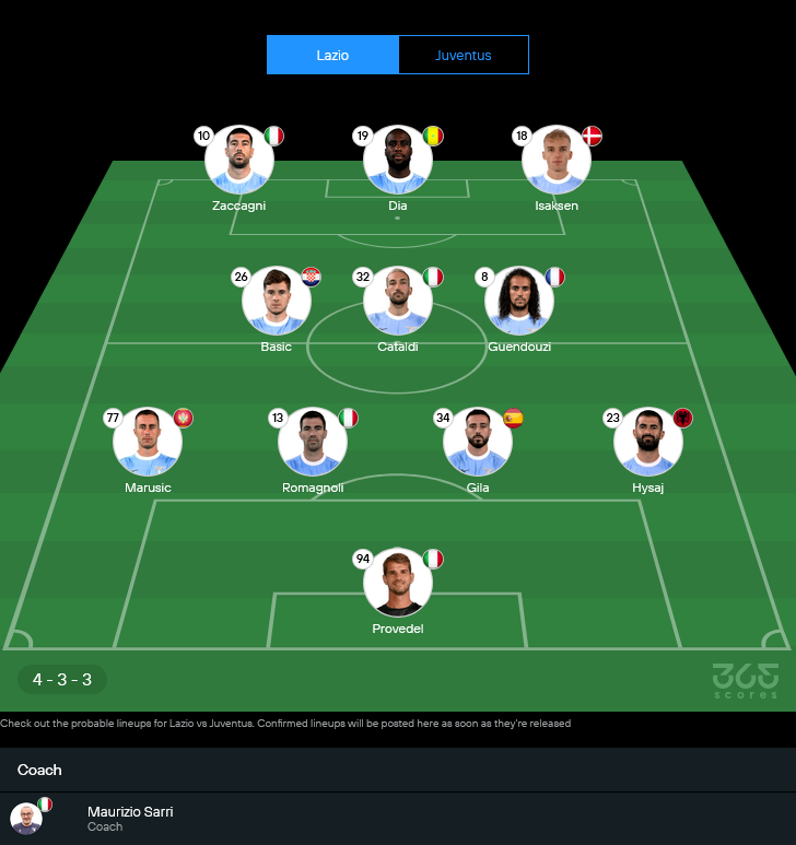 เจ้าถิ่นมีปัญหาผู้เล่นบาดเจ็บเพียบโดยเฉพาะแนวรับและตัวริมเส้น ตัวหลักที่เดี้ยงก็มีทั้ง ฟิซาโย่ เดเล-บาชิรู, วาเลนติน กาสเตยานอส, ลูก้า เปลเลกรีนี่, นูโน่ ตาวาเรส และ มัตเตโอ กันเชลเลียรี่ แถมยังไม่มี ซามูแอล ชิโกต์ อีกคน สภาพทีมไม่เต็มร้อยแต่ยังมีตัวหลักอย่าง มัตเตีย ซัคคานญี่, บูลาย เดีย และ กุสตาฟ อิซัคเซ่น พร้อมลงลุยในแผน 4-3-3