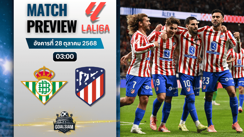⚽ ศึกเดือดลาลีกา! เรอัล เบติส เปิดบ้านดวล แอตเลติโก้ มาดริด คืนนี้ GOALSIAM ชี้ชัดครบทุกมุม