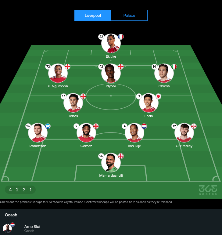 ลูกทีมของ อาร์เน่ สล็อต เจอปัญหาตัวเจ็บเพียบ ไล่ตั้งแต่ อเล็กซานเดอร์ อิซัค, ไรอัน กราเวนเบิร์ช, อลิสซง เบ็คเกอร์, เจเรมี่ ฟริมปง, โจวานนี่ เลโอนี่ รวมถึง เคอร์ติส โจนส์ ที่ต้องเช็กฟิต เกมนี้คาดว่าจะมาในระบบ 4-2-3-1 และอาจมีการโรเตชันบางตำแหน่งเพื่อให้ผู้เล่นหลักได้พัก GOALSIAM มองว่าการ วิเคราะห์บอล เกมนี้ต้องจับตาแนวรุกว่าจะรีดประสิทธิภาพได้แค่ไหน