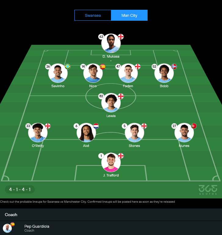 เป๊ป กวาร์ดิโอลา อาจโรเตชันแต่คุณภาพยังเหลือๆ ขาด โรดรี้ และ อับดุโกดิร คูซานอฟ ที่เดี้ยงยาว แต่แกนรุกหนุ่มกำลังไฟแรงนำโดย โฟเด้น–บ็อบบ์–ซาวินโญ่ พร้อมปั้นเกมหลังหอกดาวรุ่ง