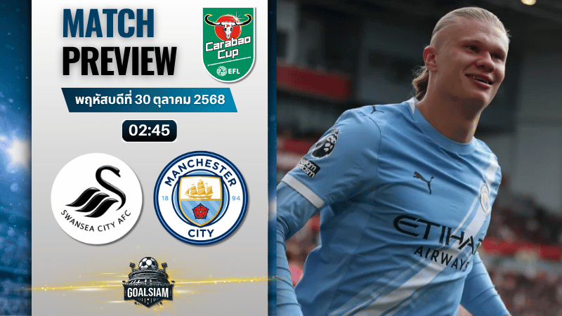 ค่ำคืนนี้สายทำเงินห้ามพลาด เกมเดือดคาราบาวคัพ รอบ 4 ที่ สวอนซี ซิตี้ เปิดบ้านรับมหาอำนาจอย่าง แมนเชสเตอร์ ซิตี้ ความเข้มข้นมาเต็ม ทั้งรูปเกมที่ไหลเร็วและแนวรุกจัดหนักของทีมเยือน ส่วนเจ้าถิ่นกำลังคึกจากชัยชนะนัดล่าสุด กลิ่นดราม่าลอยมาแต่ไกล ใครกำลังมองหาแนวทาง ทีเด็ดบอล วิเคราะห์บอล GOALSIAM คู่นี้คือของจริง ดูทรงแล้วมีประตูให้ได้เฮกันยาวๆ