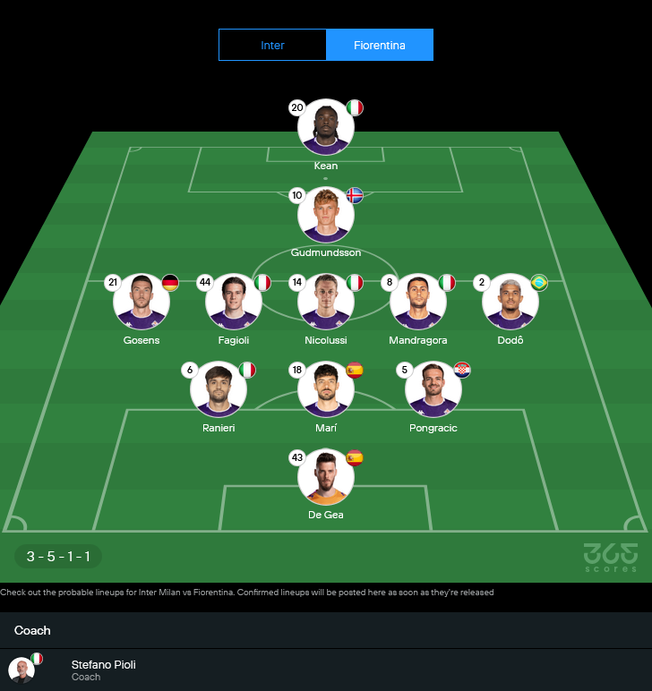 | 07/02/2025 | เซเรีย อา | ฟิออเรนติน่า 3-0 อินเตอร์ |