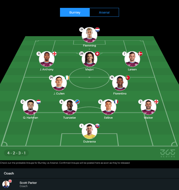 มีแข้งเดี้ยงค้างสต๊อกหลายคน อาทิ จอร์แดน เบเยอร์, คอเนอร์ โรเบิร์ตส์, เซกิ แอมดูนี่, อีนอค อักเยยี แผนแม่บทคาดว่า 4-2-3-1 เน้นวินัยเกมรับแล้วหาจังหวะฉาบฉวยจากฮานนิบาล เมย์บรี และลาร์เซ่น