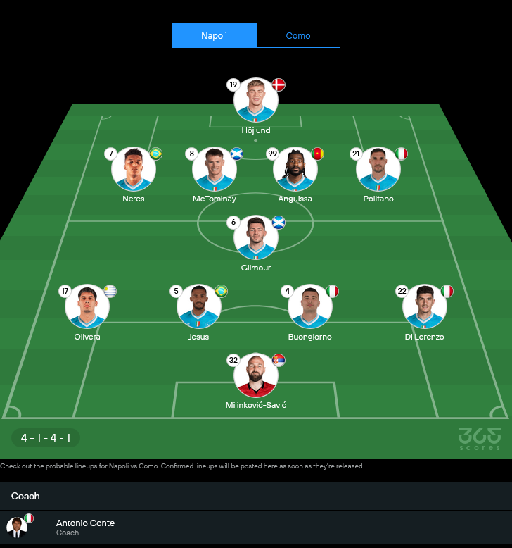 | 04/10/2024 | เซเรีย อา | นาโปลี 3–1 โคโม |
