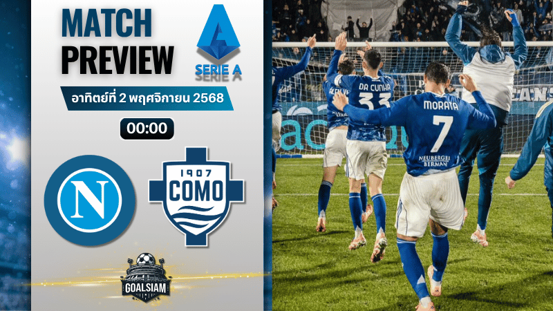 เปิดไฟสนามรอเดือดกันได้เลย ค่ำคืนนี้ที่เนเปิลส์มีของดีให้ตามลุ้น นาโปลีของอันโตนิโอ คอนเต้กำลังคึกจากการเก็บสามแต้มต่อเนื่องในลีก เจอโคโมของเชสก์ ฟาเบรกาสที่ฟอร์มเหนียวไม่แพ้ใครยาวๆ งานนี้รูปเกมไหลเร็ว มีพื้นที่ให้ปั่นกันทั้งสองฝั่ง สายลุยเตรียมเช็ก วิเคราะห์บอล GOALSIAM กันให้พร้อม บอกเลยคู่นี้จังหวะสวนคมๆ มีให้เห็นเพียบ