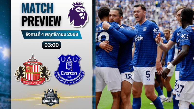 คืนนี้แฟนบอลอังกฤษห้ามพลาด! เกมสุดเดือดในศึก พรีเมียร์ลีก อังกฤษ ระหว่าง ซันเดอร์แลนด์ ที่กำลังฟอร์มแรงชนกับ เอฟเวอร์ตัน ทีมเก๋าจากเมอร์ซีย์ไซด์ งานนี้มีทีเด็ดแน่นอน เพราะทั้งสองทีมต่างต้องการแต้มสำคัญเพื่อขยับอันดับในตาราง โดย วิเคราะห์บอล GOALSIAM ขอนำเสนอ ทีเด็ดบอล คู่เดือดประจำสัปดาห์นี้อย่างถึงพริกถึงขิง