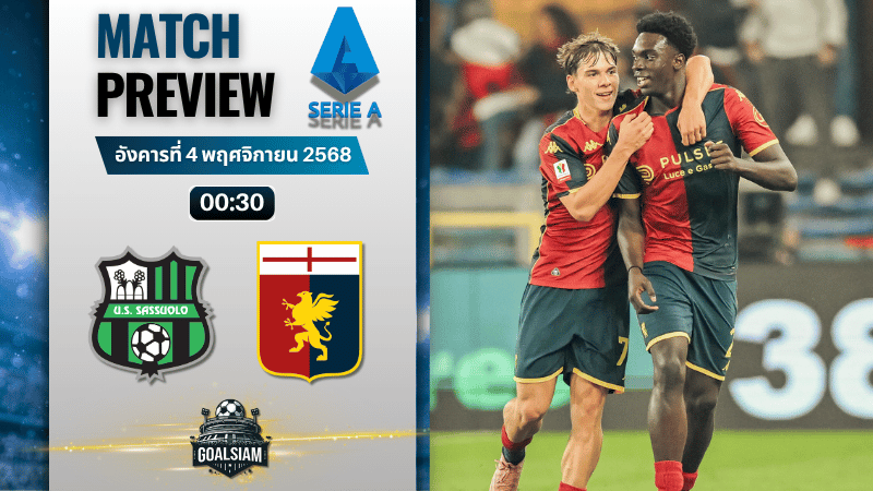 ก่อนเขี่ยบอลต้องบอกเลยว่ามีเชื้อไฟครบเครื่อง เจ้าถิ่น ซัสซูโอโล่ กำลังฟื้นแรง ชนะ 3 จาก 5 เกมหลัง เล่นในรังได้มีวินัย รับมือ เจนัว ที่เปลี่ยนโค้ชใหม่หวังแก้เฮงตก ฟอร์มเยือนยังฝืดจัด แต่ตัวรุกยังมีเขี้ยวอยู่พอตัว คู่นี้สไตล์ชนกันสนั่นริมเส้น จุดตัดสินเกมคือความเฉียบคมหน้าปากประตู ใครเสียสมาธิก่อนโดนลงโทษแน่นอน งานนี้ วิเคราะห์บอล GOALSIAM ขอลากยาวเจาะทุกชั้นให้ครบ