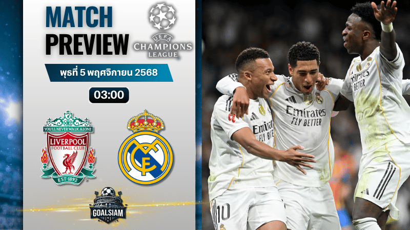 2 ยุคหลังเจอกันทีไรมีดราม่าตลอด มาดริดมักเล่นเกมใหญ่ได้เฉียบคมกว่า แต่ลิเวอร์พูลชุดนี้กำลังหิวชัย แถมเพิ่งอัดราชันได้ในปีล่าสุด เกมนี้จึงมีทั้ง “ล้างตา” และ “ย้ำแผลเก่า” อยู่ในคราวเดียว
