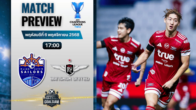 🔥 ศึก AFC Champions League Two กลับมาเดือดอีกครั้งในค่ำคืนนี้ โดยเป็นการพบกันของ ไลออน ซิตี้ เซลเลอร์ส เจ้าบ้านจากสิงคโปร์ ที่ต้องเปิดรัง บิชาน สเตเดียม รับมือทีมแกร่งจากไทยอย่าง ทรู แบงค็อก ยูไนเต็ด งานนี้ไม่ใช่แค่เกมฟุตบอลธรรมดา แต่คือศึกชี้ชะตาศักดิ์ศรีของสองลีกระดับภูมิภาคที่ไม่มีใครยอมใคร บอกเลยว่าคู่นี้แฟนบอลห้ามพลาด เพราะทั้งสองทีมมีสไตล์บอลบุกสุดมันส์ที่รับรองว่าสนั่นจอแน่! วิเคราะห์บอล GOALSIAM พร้อมเสิร์ฟ ทีเด็ดบอล มุมมองเจาะลึกทุกมิติให้คุณตรงนี้